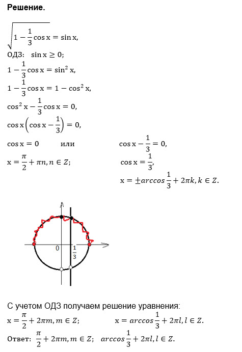 Решите уравнение sqrt(1 - (1/3)cosx) =...