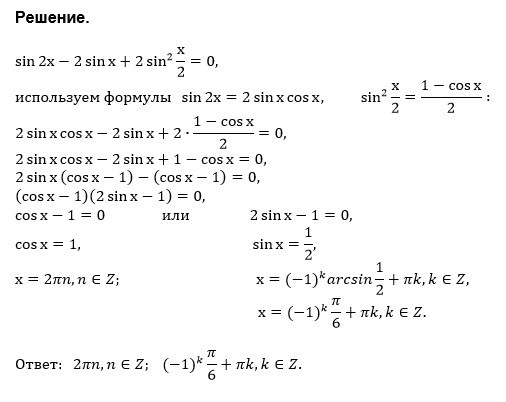 Решите уравнение sin 2x - 2 sin x + 2 sin^2 (x/2) = 0