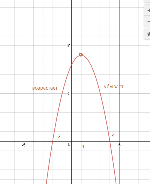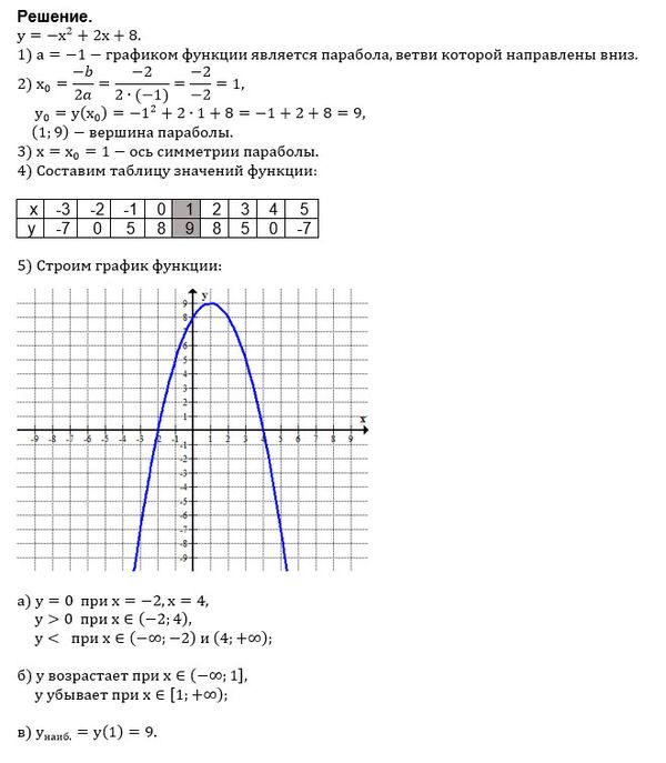 y= - (x - 1)^2+9 - графиком функции является парабола, ветви вниз, вершина в точке (1;9)