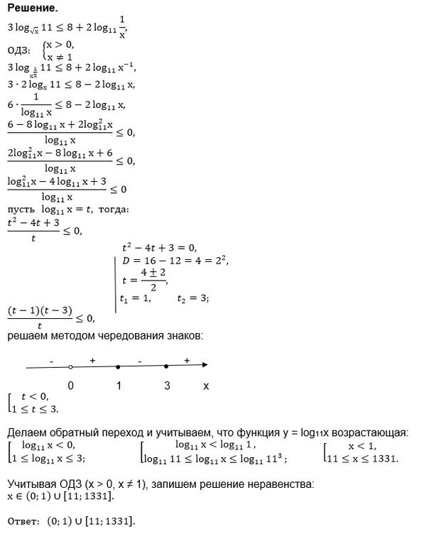 (6/log_(11)x) меньше или равно 8 -2log_(11)x