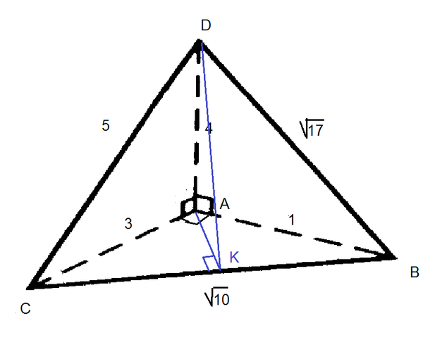 DK^2=AD^2+AK^2=4^2+(3/sqrt(10))^2=169/10