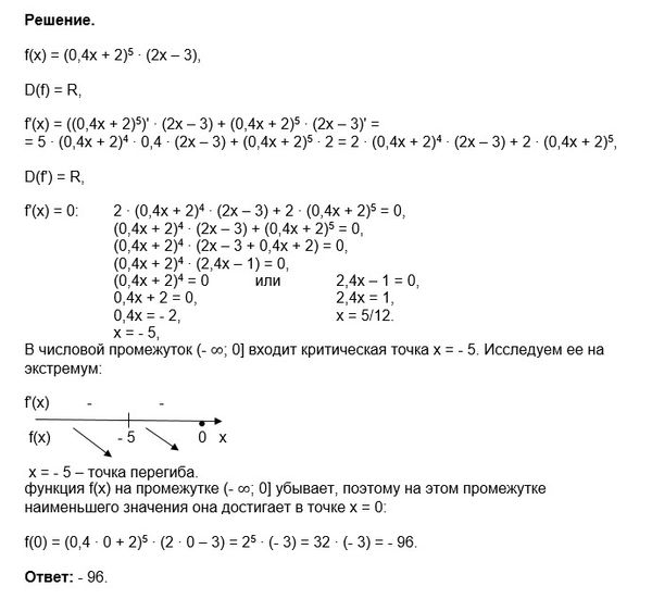 f `(x) меньше или равно 0 на (- бесконечность;0] , значит функция у=f(x) невозрастающая на (- бесконечность;0] и наименьшее значение принимает в точке x=0.