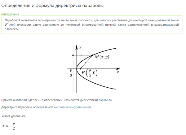 x=-p/2 - уравнение директрисы