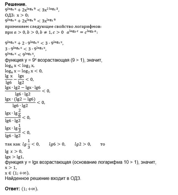 9^(log6x) + 2x^(log6 9) < 3*x^(2log2 3)
