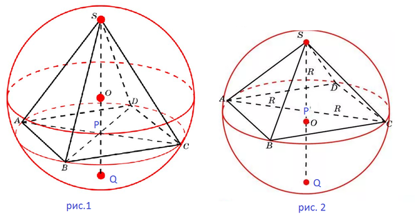 а) Если центр шара расположен внутри пирамиды,