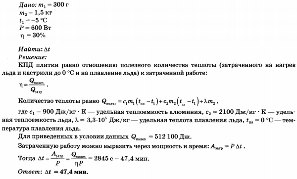 оС, на плитке мощностью 600 Вт с КПД 30%. Удельная