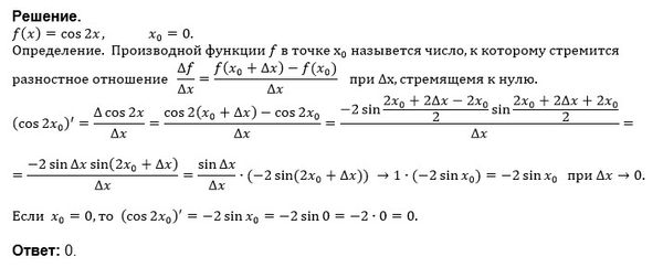 Найти f'(x0) по определению производной: f(x) = cos2x, x0=0