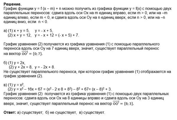 Существует ли параллельный перенос вектора ОО', где О - начало координат, при котором график уравнения (1) отображается на график уравнения (2):