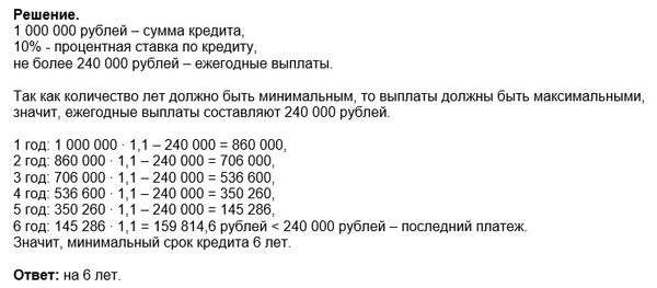 процентов. На какое минимальное количество лет может Наталья взять кредит, чтобы ежегодные выплаты были не более 240 000 рублей?
