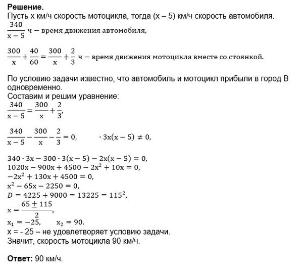 (300/(х+5)) час - время мотоциклиста.
