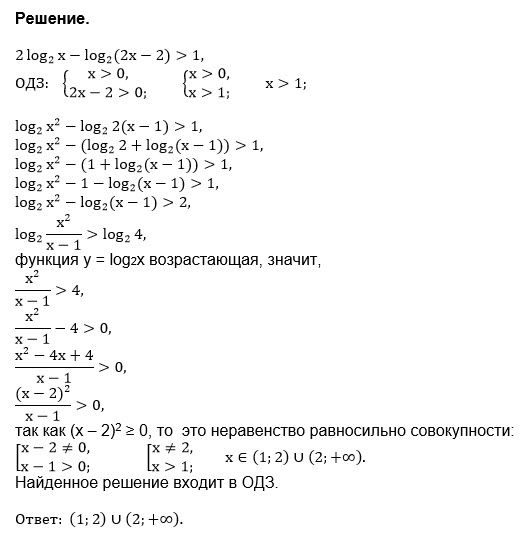 log_(2)x^2 > log_(2)2 *(2x-2).
