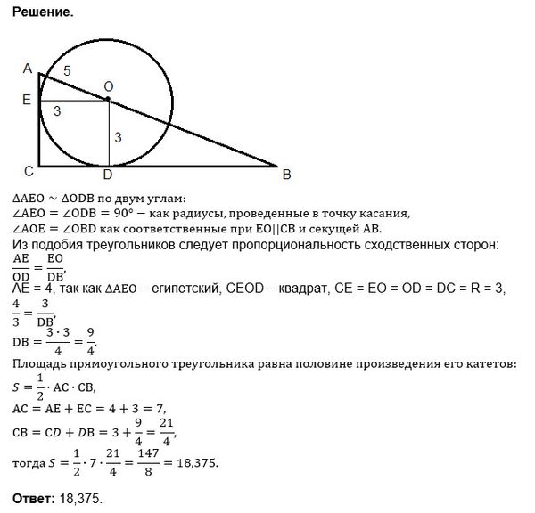 S ( Δ ABC) = (1/2)*AC * BC=(1/2)*7*5,25=18,375=147/8
