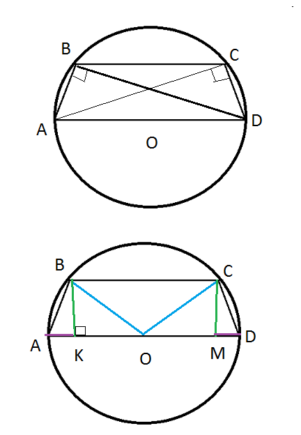 Так как по условию углы ABD и ACD прямые, значит опираются на диаметр и около трапеции АВСD можно описать окружность.