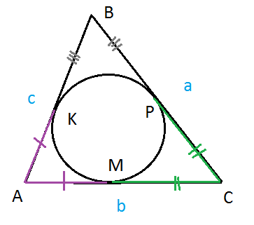 (a+b-c)/2= p-c, где p=(a+b+c)/2