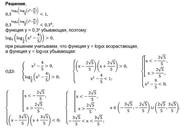 (0,3)^(log5(log(1/5)(x^2-4/5))) < 1...