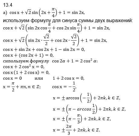 13.4 cos x + √2 sin ( 2x + π/4 ) + 1 = sin 2x [ -11π/2 ; -4π ] 13.5 sin x + 2 sin ( 2x + π/6 ) = √3 sin 2x + 1 [ -7π/2 ; -2π ]