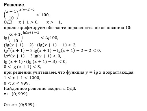 ((x+1)/10)^(lg(x+1)-2) < 100 [7.27]