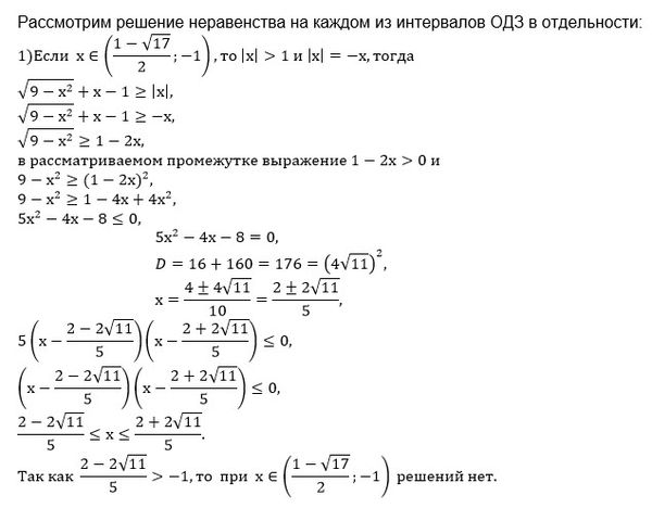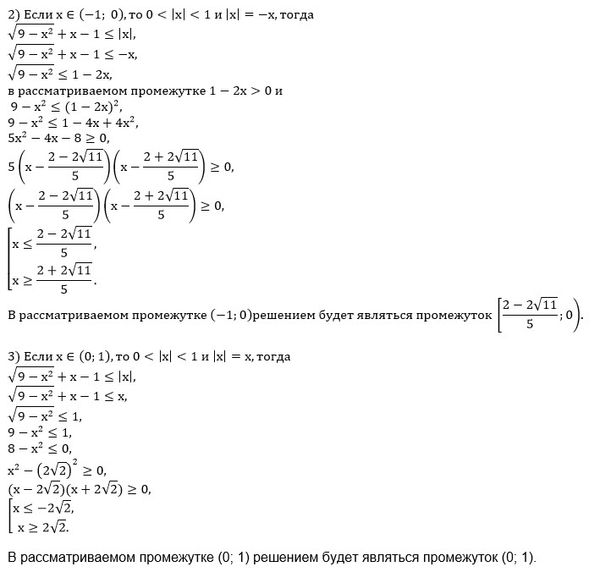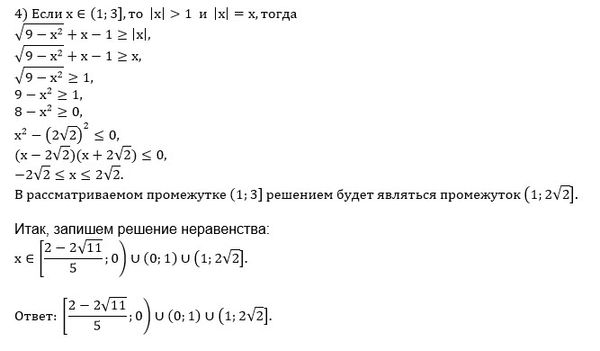 log(|x|)(sqrt(9-x^2)+x-1) ≥ 1 [7.52]