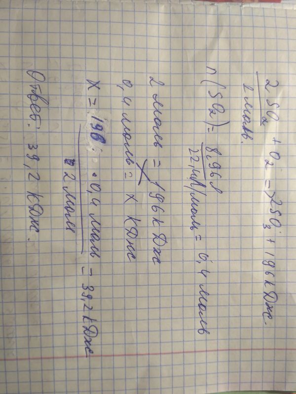 В соответствии с термохимическим уравнением 2SO2 + O2 = 2SO3 + 196 кДж рассчитайте, какое количество теплоты выделится при окислении 8,96 л (н. у.) сернистого газа. [v3-28]