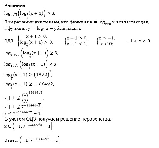 log(9 корней из 8)(log(1/7)(x+1)) ≥ 3 [v14-15]
