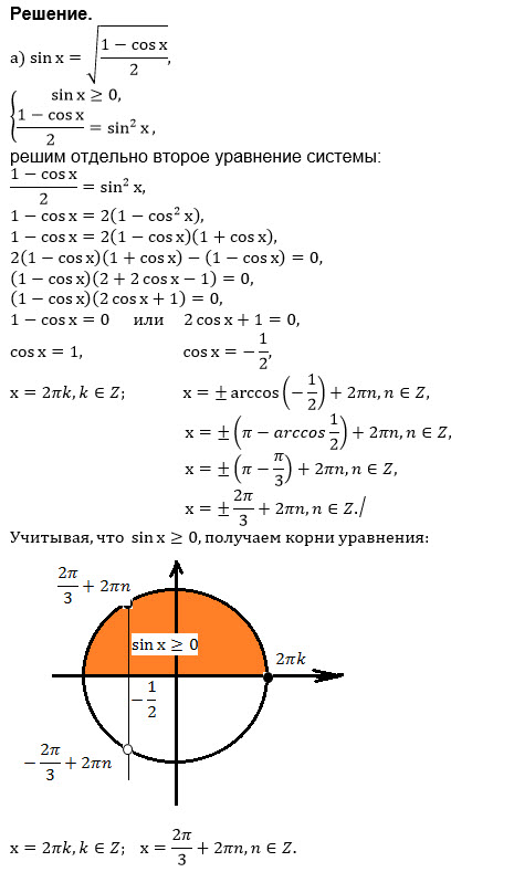 Если sinx ≥ 0, возводим в квадрат (подкоренное выражение неотрицательно при любом х)