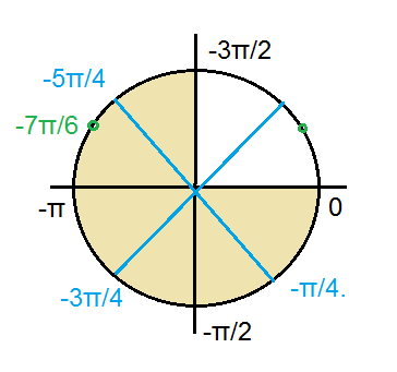 -5π/4; -7π/6; -3π/4; -π/4.