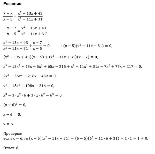 7-х/х-5=х^2-13х+43/х^2-11х+31=0