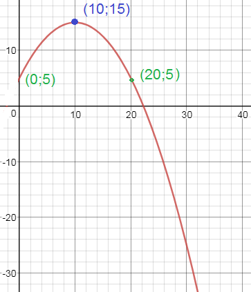 t=20 x=5+2*20-0,1*20^2=5+20-20=5