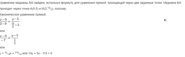 д) уравнение прямой, проходящей через вершину C параллельно стороне AB;