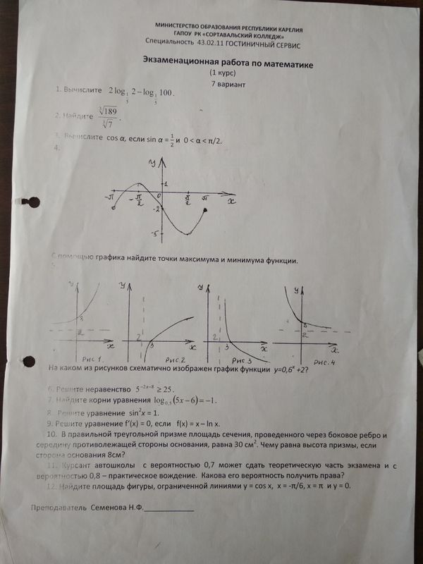 4 см. рисунок 9 f`(x)=(x-lnx)`=(x)`-(lnx)`=1-(1/x)=(x-1)/x f`(x)=0 (x-1)/x=0 x-1=0 x=1 О т в е т. 1 11 Чтобы получить права, курсант должен сдать и теоретическую часть и вождение. Применяем правило умножения. р=0,7*0,8=0,56