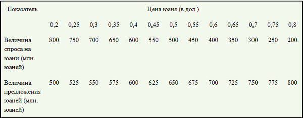 В таблице представлена шкала спроса и предложения на китайские юани. Рассчитайте: