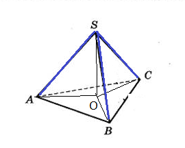 прямоугольные треугольники SOA; SOB и SOC равны по катету SO и острому углу.