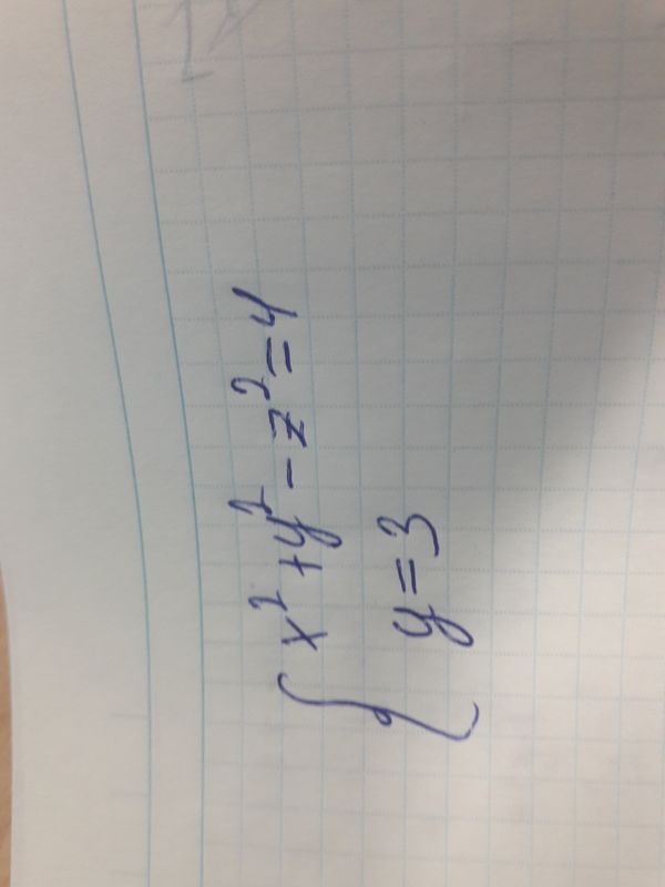 (x^2/4)+(y^2/4)-(z^2/4)=1 - однополостный гиперболоид a=2 b=2 c=2 y=3 - плоскость, параллельная плоскости xOz и проходящая через точку (0;3;0) Сечение такое как на картинке справа, только обратите внимание как расположена ось Оу