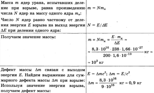 При взрыве термоядерной бомбы освобождается энергия 8.3*10^(16) Дж. Эта энергия получается в основном за счет деления ядер урана 238. При делении одного ядра урана 238 освобождается 238 а.е.м. Вычислите массу ядер урана, испытавших деление при взрыве, и суммарный дефект массы.