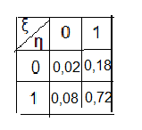 Случайна величина (ξ ;η) задана следующей таблицей: