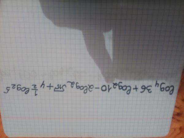 log_(4)36=log_(2^2)6^2=(2/2)8log_(2)6; 2log_(2)sqrt(15)=log_(2)(sqrt(15))^2=log_(2)15; 4^((1/2)log_(2)5)=(2^(2))^((1/2)log_(2)5)=2^(log_(2)5)=5 получим: log_(2)6+log_(2)10-log_(2)15+5=log_(2)((6*10)/15)+5=log_(2)4+5=2+5=7