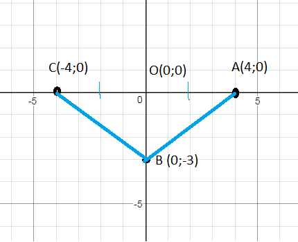 на координатной плоскости нарисован равнобедренный треугольник ABC с основание AC где A(4;0) B(0;-3) C(a b ) и точка C лежит на оси абсцисс . Найдите сумму 2a + b геометрия 7 класс
