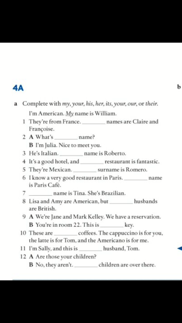 1. their 2. your 3. his 4. its 5. their 6. its 7. her 8. their 9. your 10. our 11. my 12. my