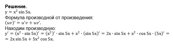 Помогите найти производную функции: y=x^2sin5x