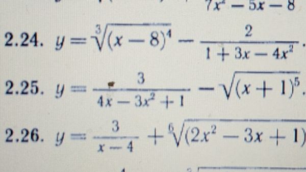 2.25. y = 3/(4x - 3x² + 1) - √(x + 1)⁵