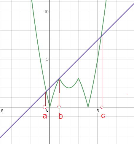 О т в е т. (a;b)U(b;c) значения a;b;c найти по графику приближенно b=1 a ≈-0,4 c ≈5,4