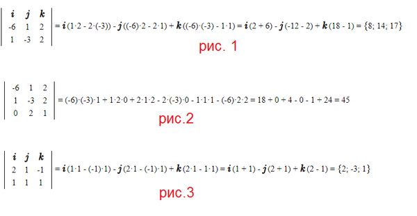 Смешанное произведение равно определителю третьего порядка, составленному из координат данных векторов. ( cм. рис.2)