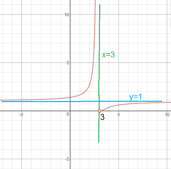 Значит прямая х=3 может быть вертикальной асимптотой.