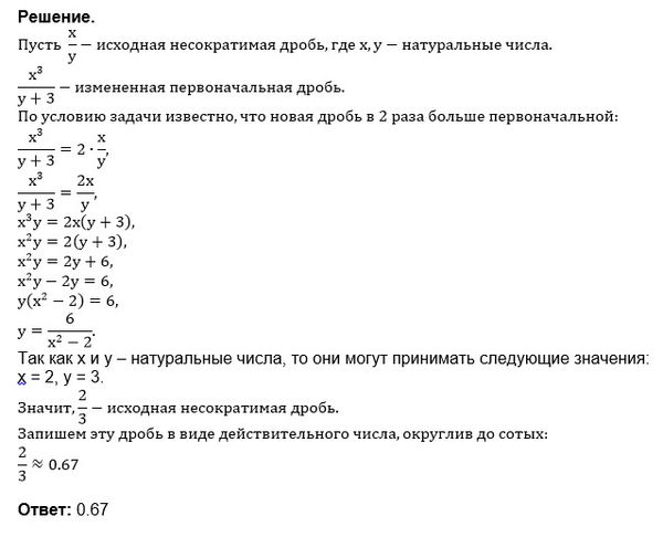 Числитель несократимой дроби возвели в куб, а знаменатель увеличили на 3. В результате дробь удвоилась. Найдите значение исходной дроби, если ее числитель и знаменатель - натуральные числа.