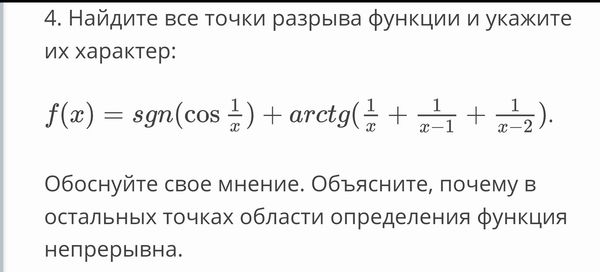 g(x) непрерывна х≠ 0 и х≠1/((π/2)+πk), k ∈ Z