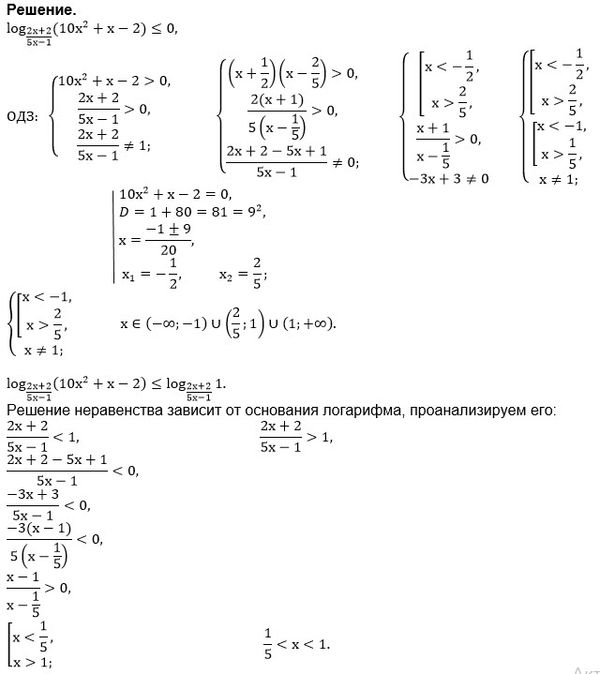 log((2x+2)/(5x-1)) (10x^2+x-2) ≤ 0