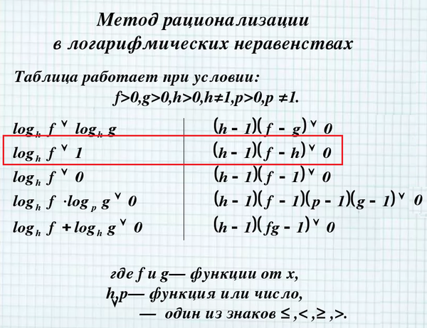 Применяем метод рационализации логарифмических неравенств