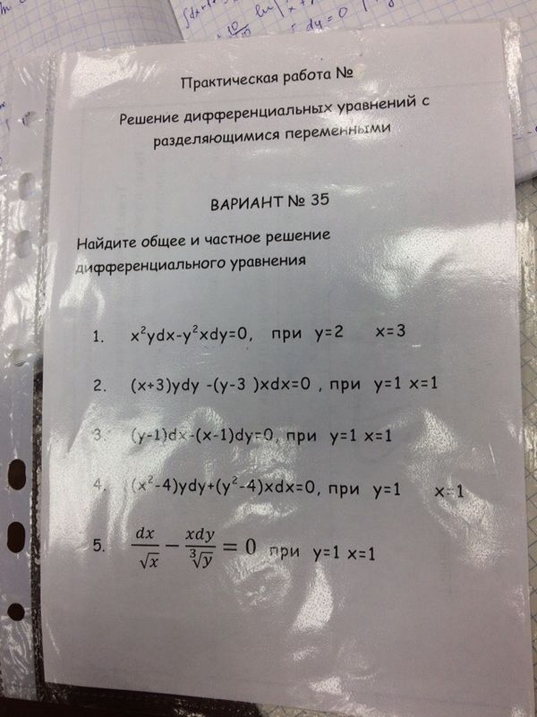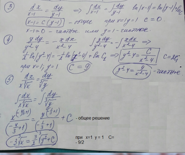 Высшая математика.Решение дифференциальных уравнений с разделяющими переменными.Заранее спасибо