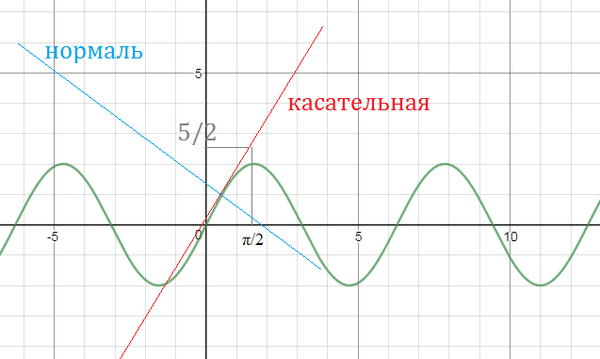 3. Написать уравнения касательной и нормали к кривой [m] y = 2 \sin x [/m] в точке [m] M \left( \frac{\pi}{6}, 1 \right) [/m]. Сделать чертёж. Определить по чертежу знак производной [m] y'(x_0) [/m] при [m] x_0 = \frac{\pi}{2} [/m], ответ обосновать.