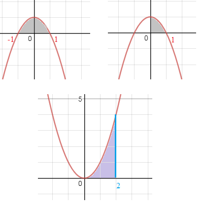 S= ∫^(1) _(-1)(1-x^2)dx=2 ∫ ^(1)_(0)(1-x^2)dx=2(x-(x^3/3))|^(1)_(0)=